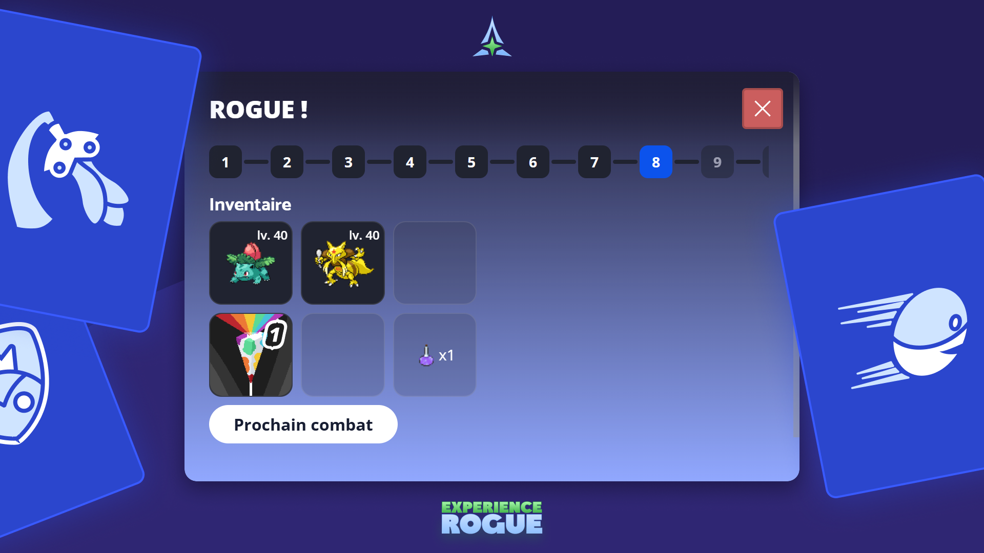 Mais une organisation bien connue, fera son grand retour, et mettra en place cette expérience pour entrainer les dresseurs à se défendre face aux menaces Pokémon. Maitriser l’Expérience Rogue, et son facteur aléatoire, c’est maitriser l’art ancestral du combat Pokémon.