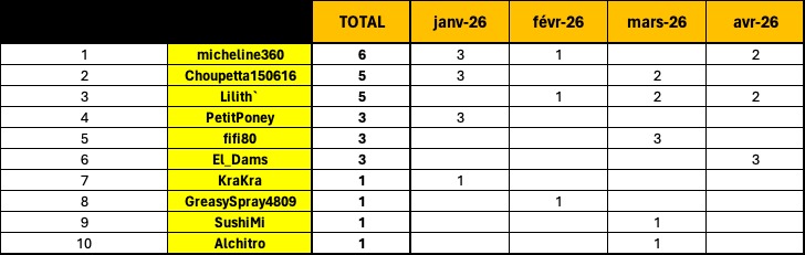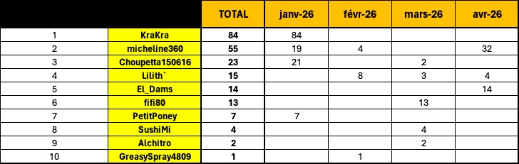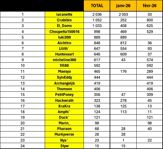🥈 Lilith` : 46 pts (Novembre 2025)