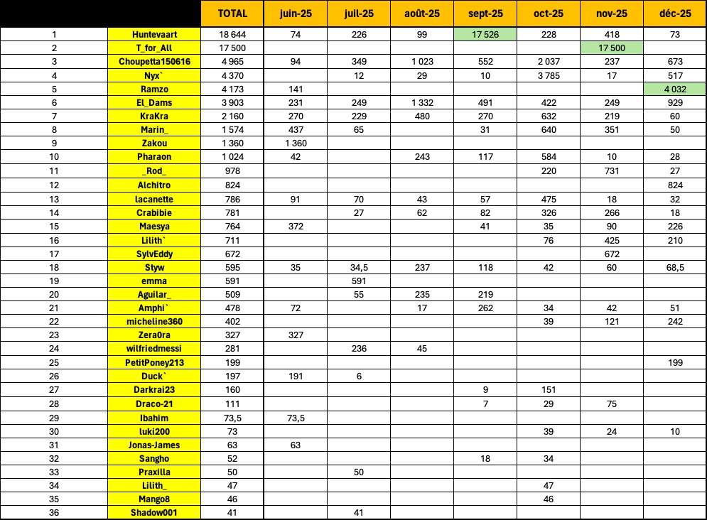 10. Ibahim : 203,5 pts 11. Choupetta150616 : 94 pts