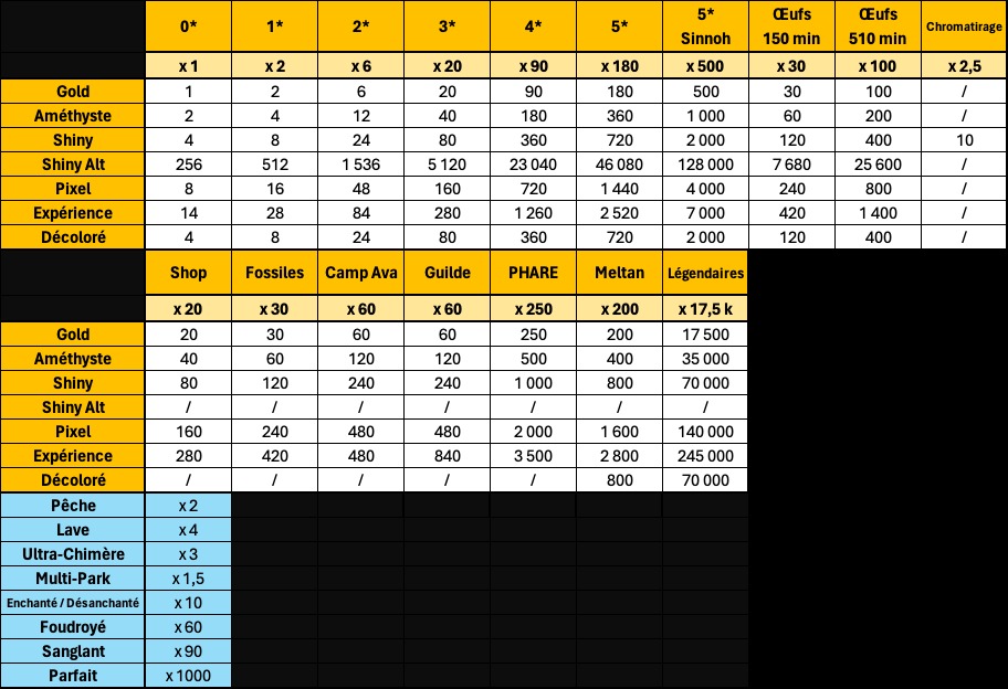 Les génomes sont désormais pris en compte, le détail des multiplicateurs se trouvent ci-dessous :